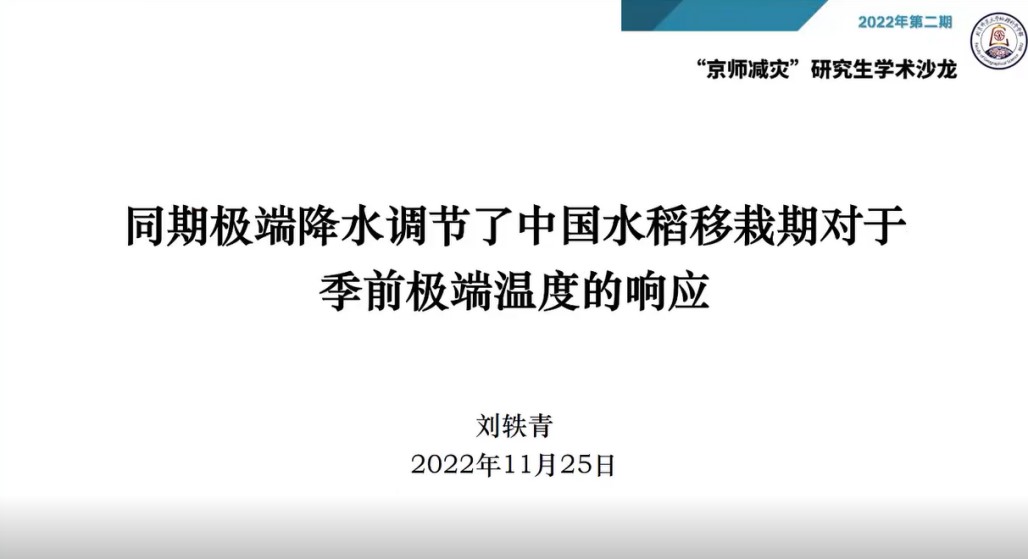 “京师减灾”研究生学术沙龙2022年第二期成功举办