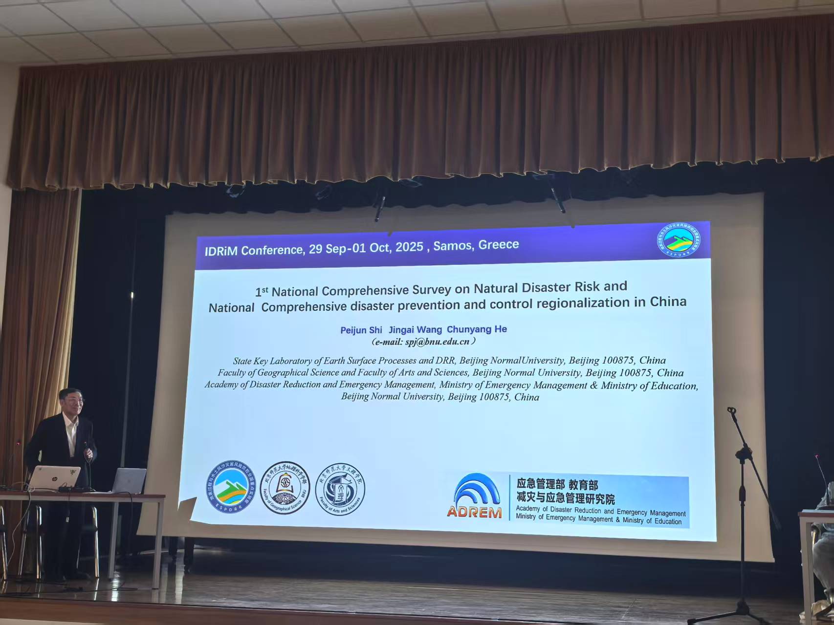 2025年9月28日至10月1日,地理科学学部史培军教授、何春阳教授、王静爱教授带领四名研究生,赴希腊萨摩斯参加第十五届国际综合灾害风险管理学会大会(IDRiM 2025)。学部师生应邀担任分会场主持人、作了学术报告与海报展示,相关成果获得与会专家的高度评价与广泛关注,充分展现了学部在灾害风险减灾领域的最新科研进展,以及地理学在防灾减灾实践中的重要作用。基于本次交流取得的积极反响,并经IDRiM理事会一致通过,2027年第十七届国际综合灾害风险管理学会大会将由中国北京师范大学珠海校区承办。该承办权的成功获得得益于地表过程与水土风沙灾害风险防控全国重点实验室、应急管理部-教育部减灾与应急管理研究院、北京师范大学地理科学学部及文理学院的共同努力与协作支持。