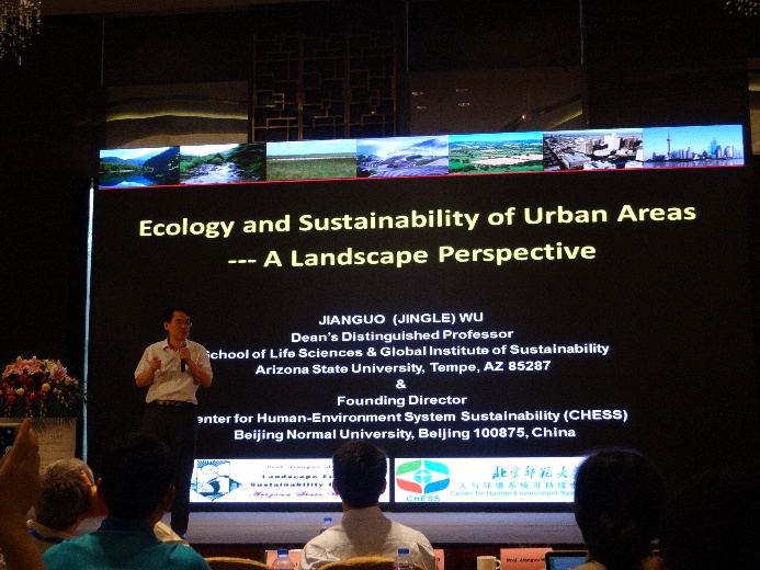 会上,邬建国教授应邀作了题为“Ecology and sustainability of urban areas: A landscape perspective”的大会主题报告。从景观的角度,介绍了城市生态和城市可持续性研究的发展历程、相关理论以及在中国开展相关研究的机遇和挑战。