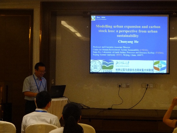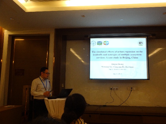 该分会场共分上下两个半场。上半场由黄庆旭副教授主持。我院何春阳教授、厦门大学李扬帆副教授与李艺博士、首都经济贸易大学的吴康副教授和浙江大学的黄璐博士分别进行了学术报告。报告题目依次为“Modelling impacts of urban expansion on regional ecosystem services by linking the LUSD-urban and InVEST model”“Coastal urbanization, regional environmental change and resilience practice in China”“From metropolitan area to megalopolis: define China’s functional urban areas with geographic open data”“Assessing urban sustainability of Chinese megacities: 35 years after the economic reform and open-door policy”