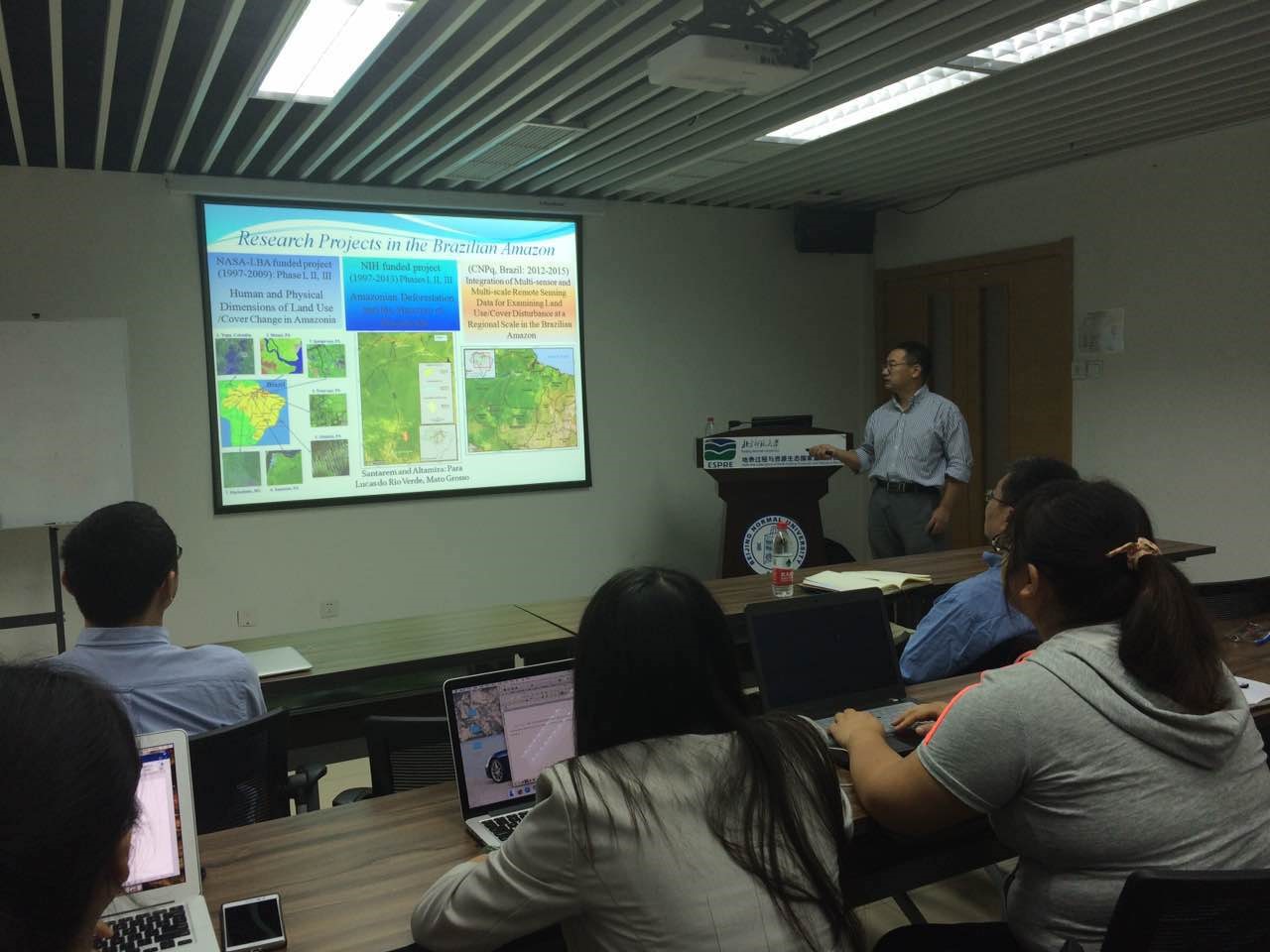 2016922日下午,应实验室景观团队何春阳教授邀请,美国密歇根州立大学全球变化与对地观测研究中心陆灯盛教授来访并在京师科技大厦933会议室作了题为基于遥感的不透水地表提取方法——现状与展望的学术报告。报告会由何春阳教授主持。陈晋教授、陈学泓副教授和黄庆旭副教授等60多位师生参加了会议。