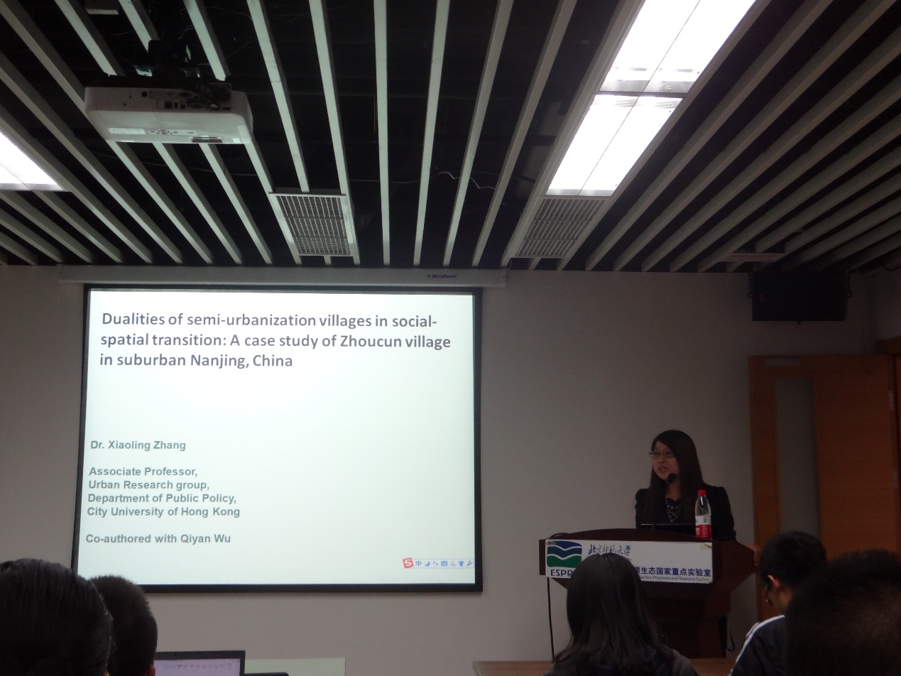 20161010日下午,应我室景观团队何春阳教授邀请,香港城市大学张晓玲副教授来访并在京师科技大厦933会议室作了题为半城市化之大城市边缘区村镇社会与空间变迁的二元性的学术报告。黄甘霖副教授,黄庆旭副教授和刘志锋博士等50多位师生参加了报告。何春阳教授主持了报告会。