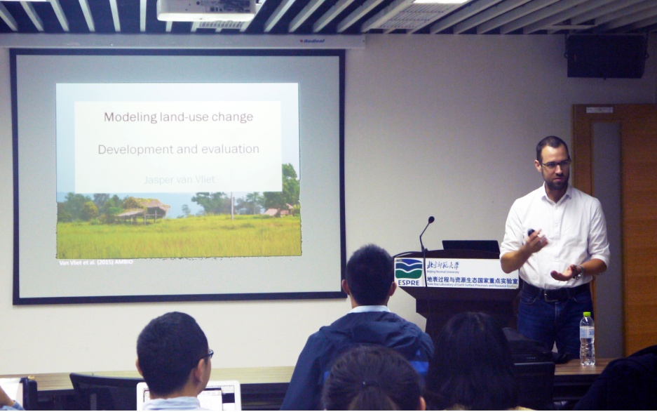 20161027日,应实验室景观团队何春阳教授邀请,荷兰阿姆斯特丹自由大学Jasper van Vliet博士来访并在京师科技大厦933会议室作了题为“模拟土地利用变化——进展与评估”的学术报告。黄庆旭副教授等40余名师生参加了报告。刘志锋博士主持了报告会。