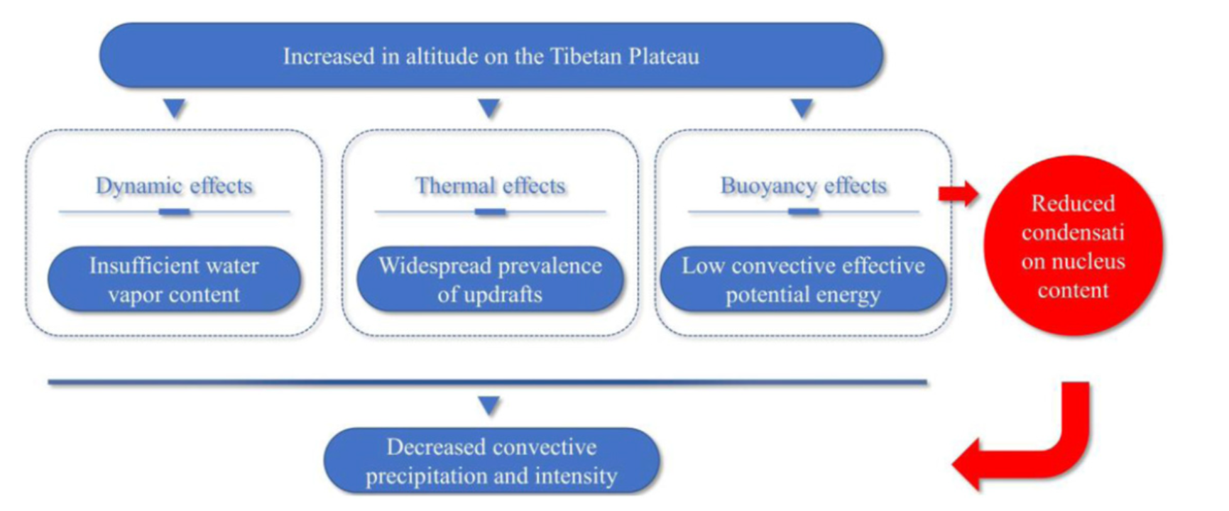 该研究不仅揭示了海拔对青藏高原降水的调控机制,更强调了大气浮力效应在高海拔气象研究中的重要性。此前,学界多聚焦于青藏高原动力和热力效应,而此次研究首次明确了"高海拔-低气压-弱浮力"这一链条对降水的关键影响。作为地球系统的"气候调节器",青藏高原的降水变化直接关系到亚洲水塔的稳定和下游生态安全。这项研究为理解高原气候特性提供了关键科学依据,也为应对气候变化背景下的水资源管理、生态保育提供了重要参考,同时提出了深化研究的方向。