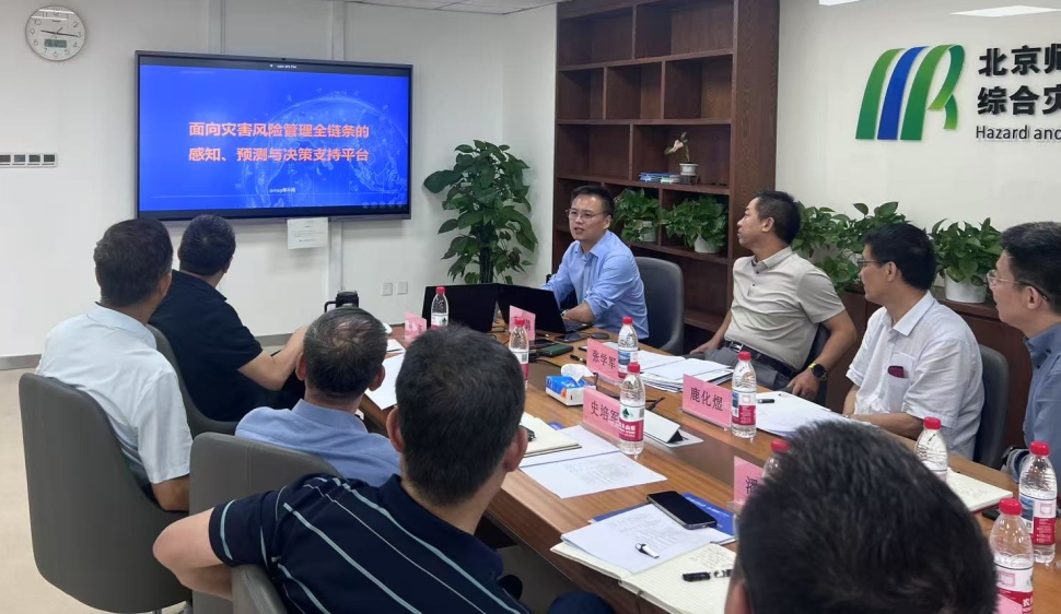 2025年8月12日上午 由应急管理部-教育部减灾与应急管理研究院、南京大学地理与海洋学院共同组织的“遥感技术在智能减灾中的应用”小型研讨会在北京师范大学京师科技大厦B座1002会议室召开。参会人员有南京大学地理与海洋学院党委书记鹿化煜教授,遥感行业创业公司研发副总兰远鸽、投融资负责人李默颖,商业航天领域活跃投资人力鼎资本CEO张学军、力鼎资本合伙人徐钢,应急管理部-教育部减灾与应急管理研究院副院长史培军教授、北师大地理科学学部遥感科学与工程研究院院长潘耀忠教授、地表过程与水土风沙灾害全国重点实验室副主任何春阳教授、北师大地理科学学部刘连友教授,北师大卫星应用前沿交叉研究院陈晋教授和北师大地理科学学部王双博士生。